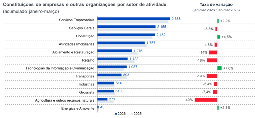 Número de empresas criadas até final de fevereiro recua 12% face a 2025